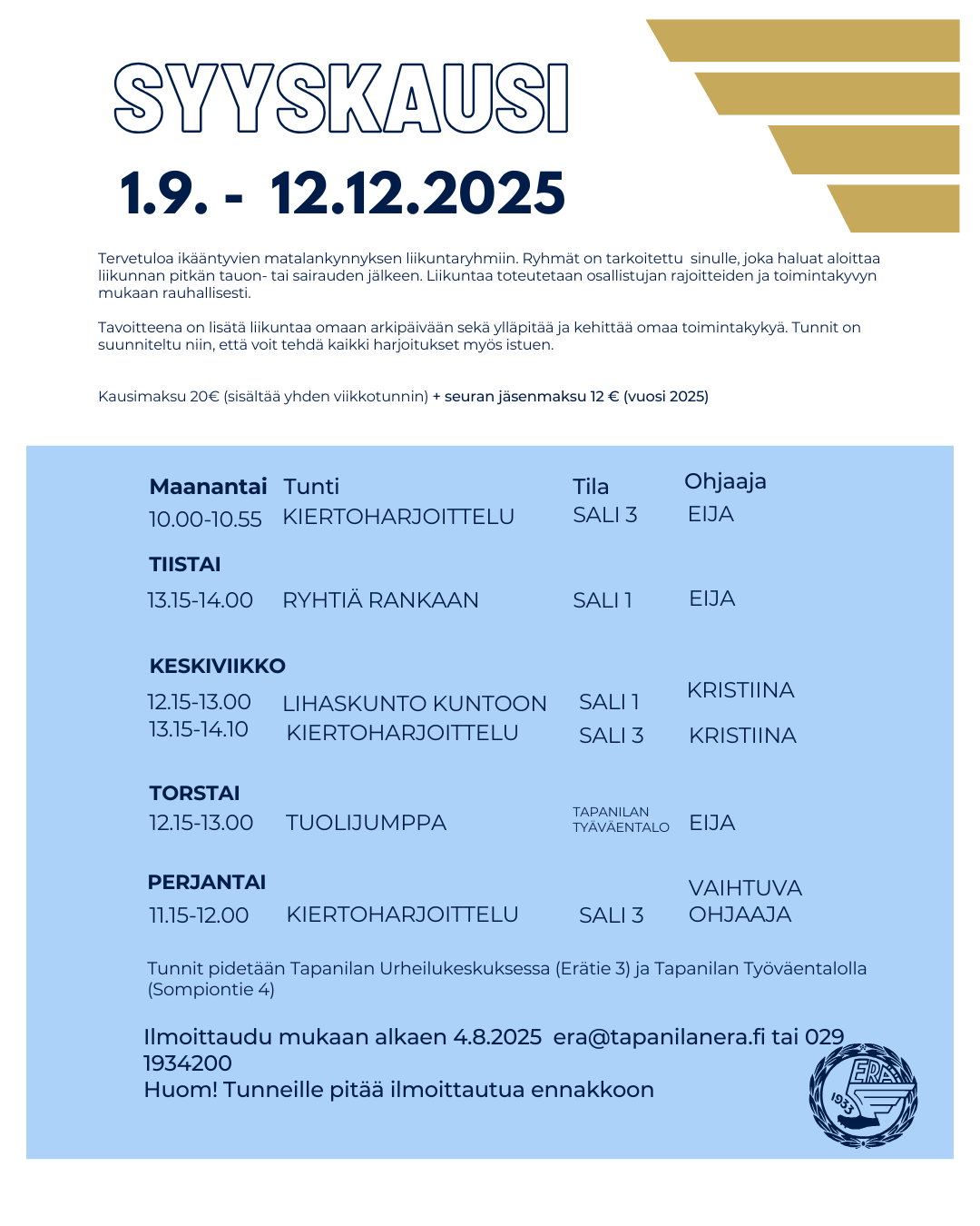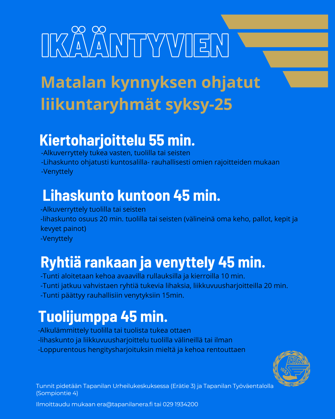 Ikääntyvien matalan kynnyksen liikuntaryhmät syksy 2025